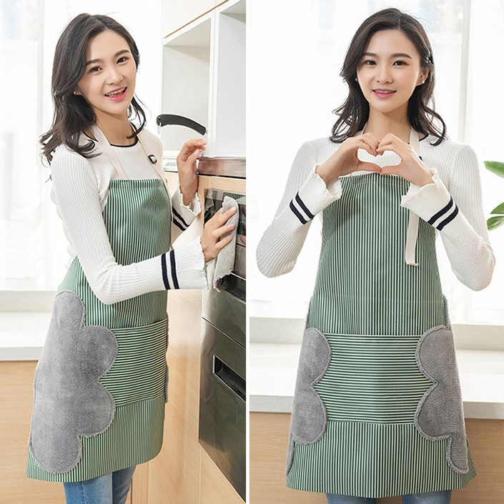 Tạp Dề Kẻ Hoa Có Khăn Lau Tay Bên Hông, Tạp Dề Chống Nước