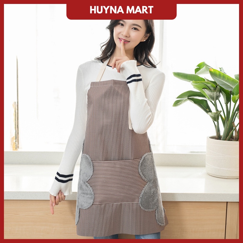 Tạp dề kẻ hoa có khăn lau tay bên hông, chống thấm nước NB16
