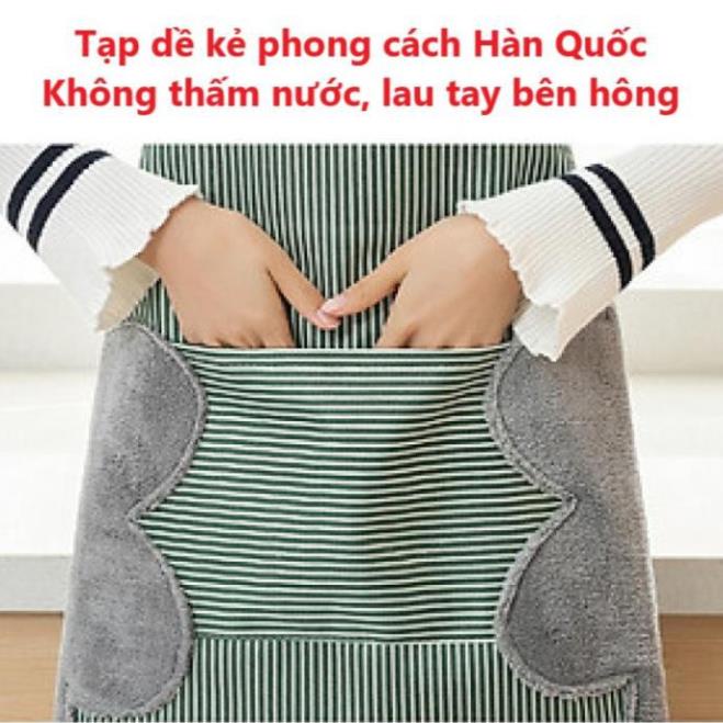 Tạp dề kẻ hoa có khăn lau tay bên hông, tạp giề chống thấm nước, thiết kế đơn giản tuyệt đẹp (Mầu ngẫu nhiên)👌Chất liệu poli không thấm nước.