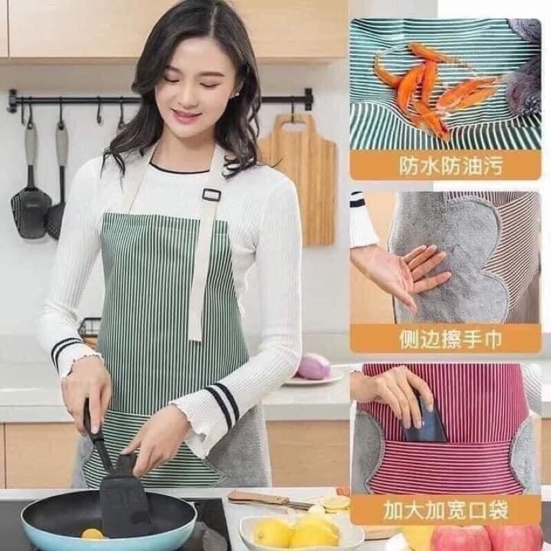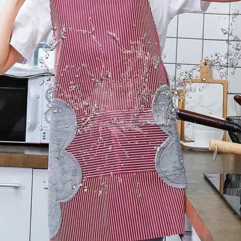 Tạp dề kẻ hoa có khăn lau tay bên hông tạp dề chống thấm nước