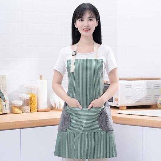 Tạp dề kẻ hoa có khăn lau tay bên hông, tạp dề chống thấm nước - (kẻ hoa cạnh sườn)