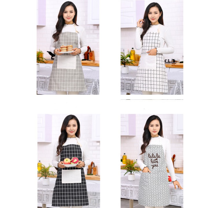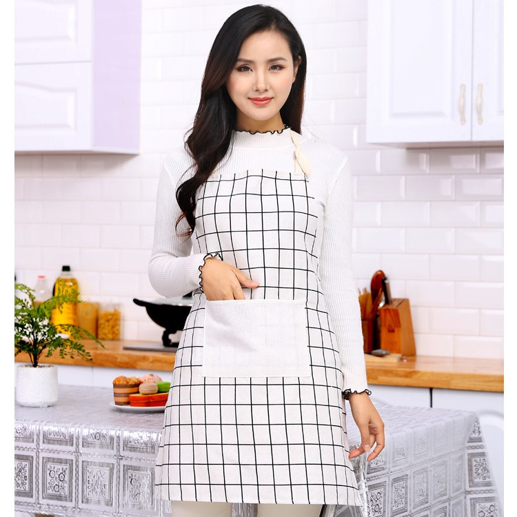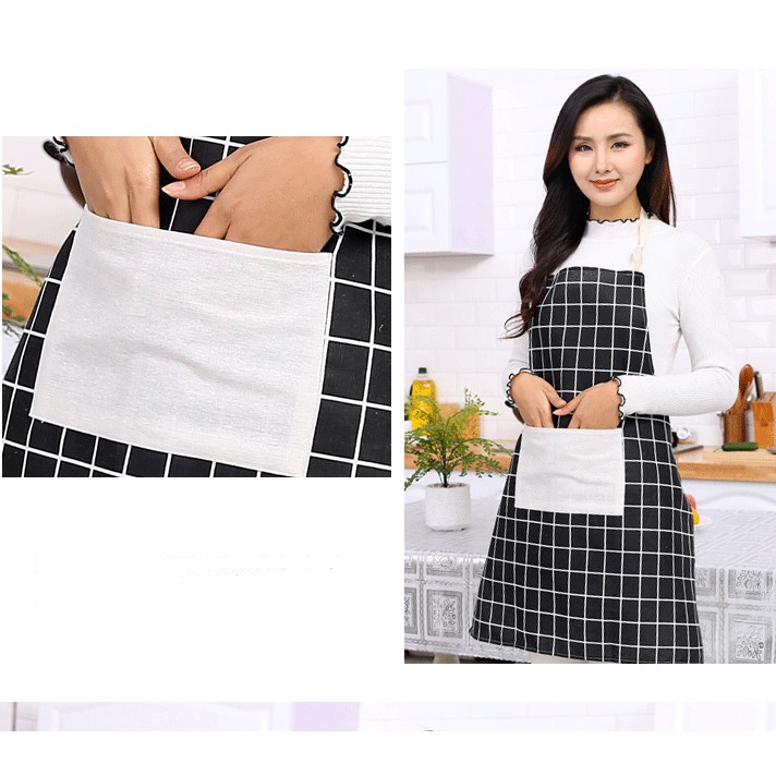 Giới thiệu Tạp dề làm bếp chống thấm nước, chống dầu mỡ kẻ caro có túi siêu tiện lợi