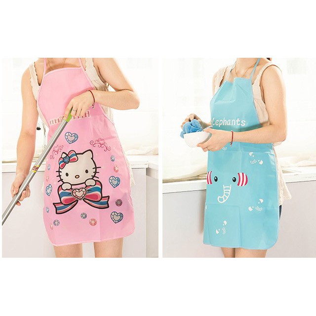 - Tạp dề làm bếp in họa tiết dễ thương và chống thấm nước là vật dụng không thể thiếu của những bà nội trợ, đầu bếp hay là nhân viên phục vụ nhà hàng, quán cafe ... giúp chúng ta không bị vấy bẩn bởi dầu mỡ, vết bẩn trong quá trình nấu ăn.