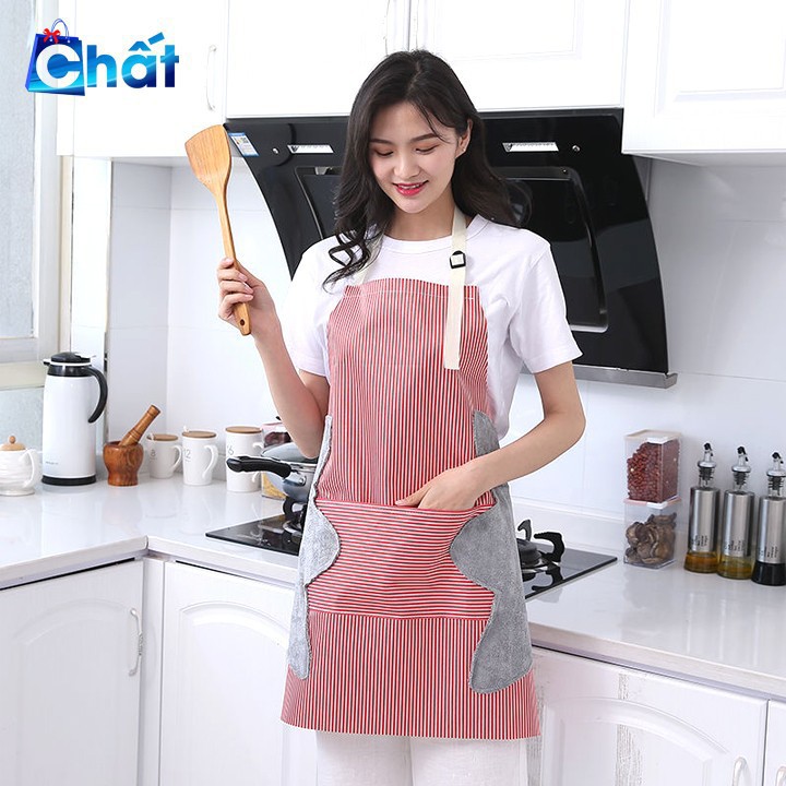 Tạp dề làm bếp kiểu sọc chống thấm có kèm khăn lau tay
