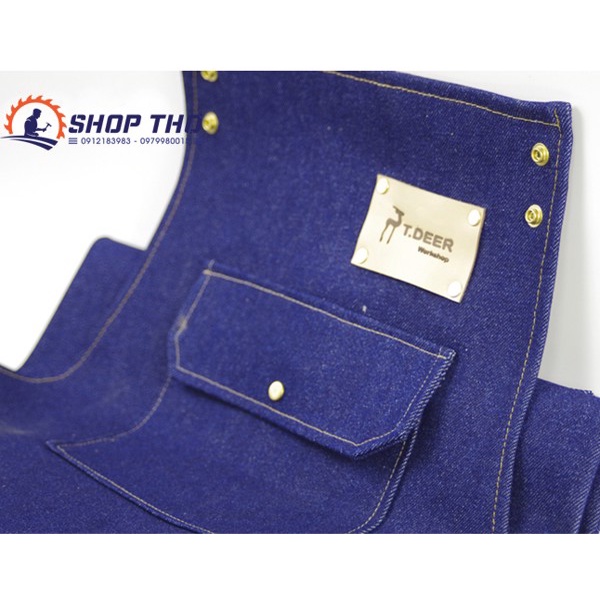 Tạp dề T.DEER làm bằng vải denim dày màu xanh, cắt da, cài