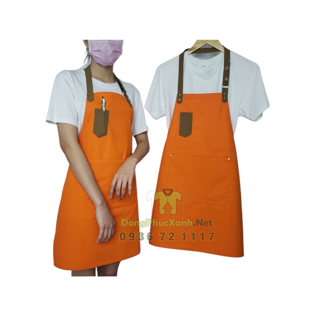 ** Lưu ý: Tạp dề may theo yêu cầu số lượng tối thiểu từ 20 chiếc. Số lượng ít hơn vui lòng chọn trong 20 mẫu tạp dề may sẵn đủ màu để in logo.