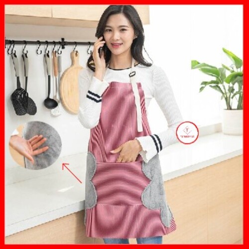 Giới thiệu Tạp dề nấu ăn chống nước Hàn Quốc có túi lớn phía trước có chỗ lau tay ướt có dây điều chỉnh kích thước cho nội trợ