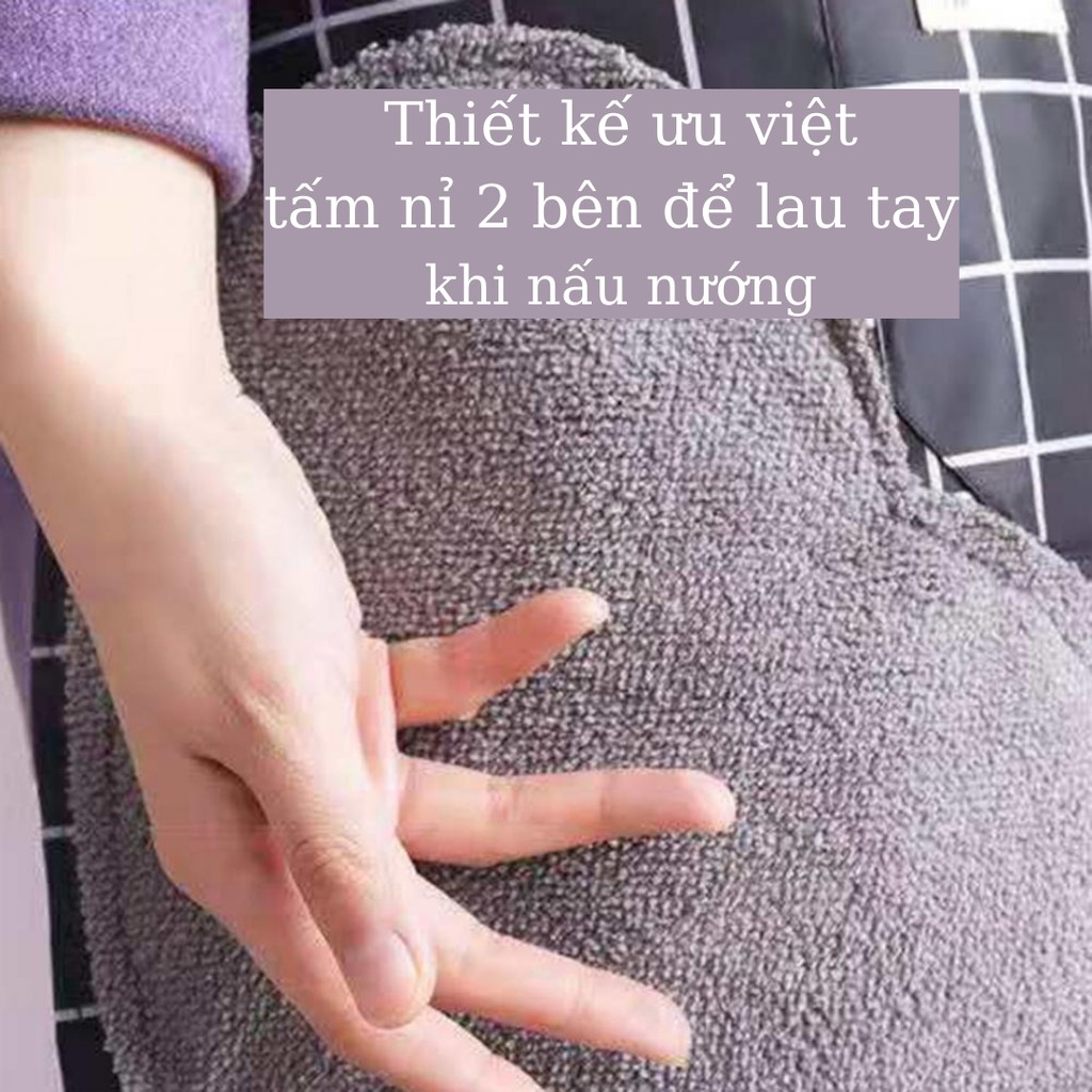 + Tạp dề thiết kế sọc kẻ caro, trang trí họa tiết dễ thương theo phong cách và thiết kế tiện dụng khiến cho việc bếp núc trở nên thú vị hơn.