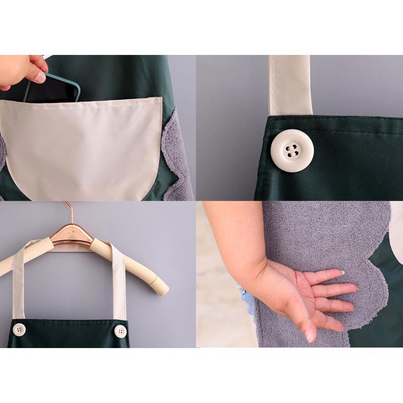 👉 Tạp dề được thiết kế túi cực rộng bạn tha hồ thoải mái để đồ linh tinh, điện thoại trong bếp khi nấu ăn.