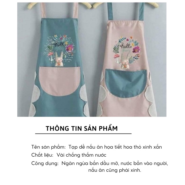 Sản phẩm: ❤Hàng Mới❤ TẠP DỀ NẤU ĂN, tạp dề chống thấm nước có lau tay họa tiết thỏ xinh nhiều màu sắc- Chất liệu: Vải PVC