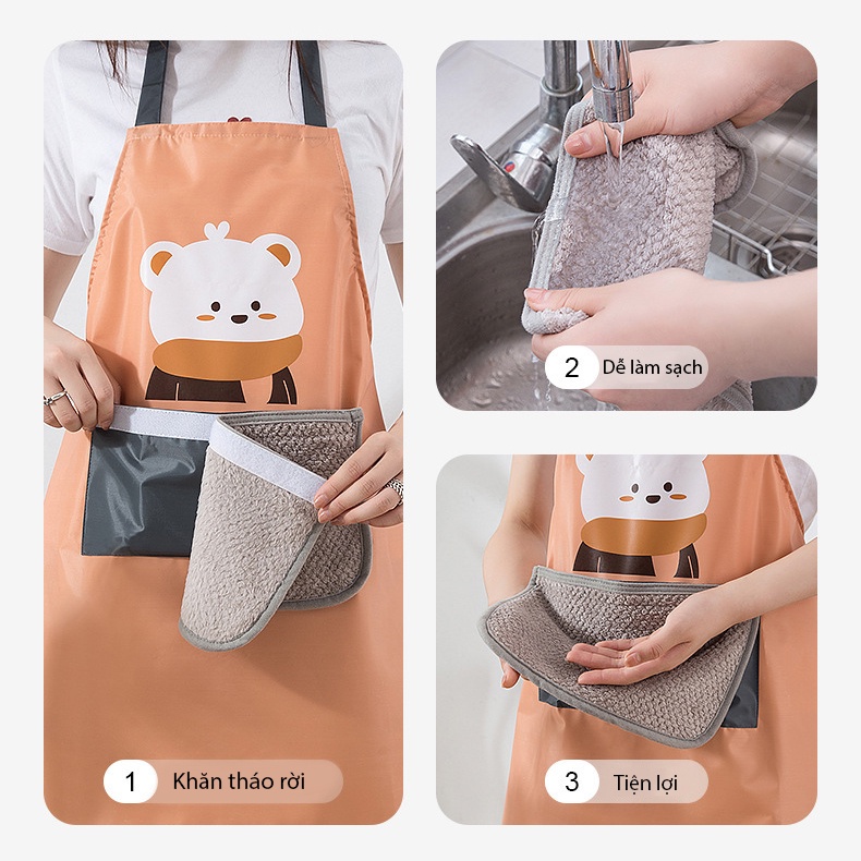 + Tạp dề đượcThiết kế kếp hợp màu sắc hiện đại, họa tiết dễ thương