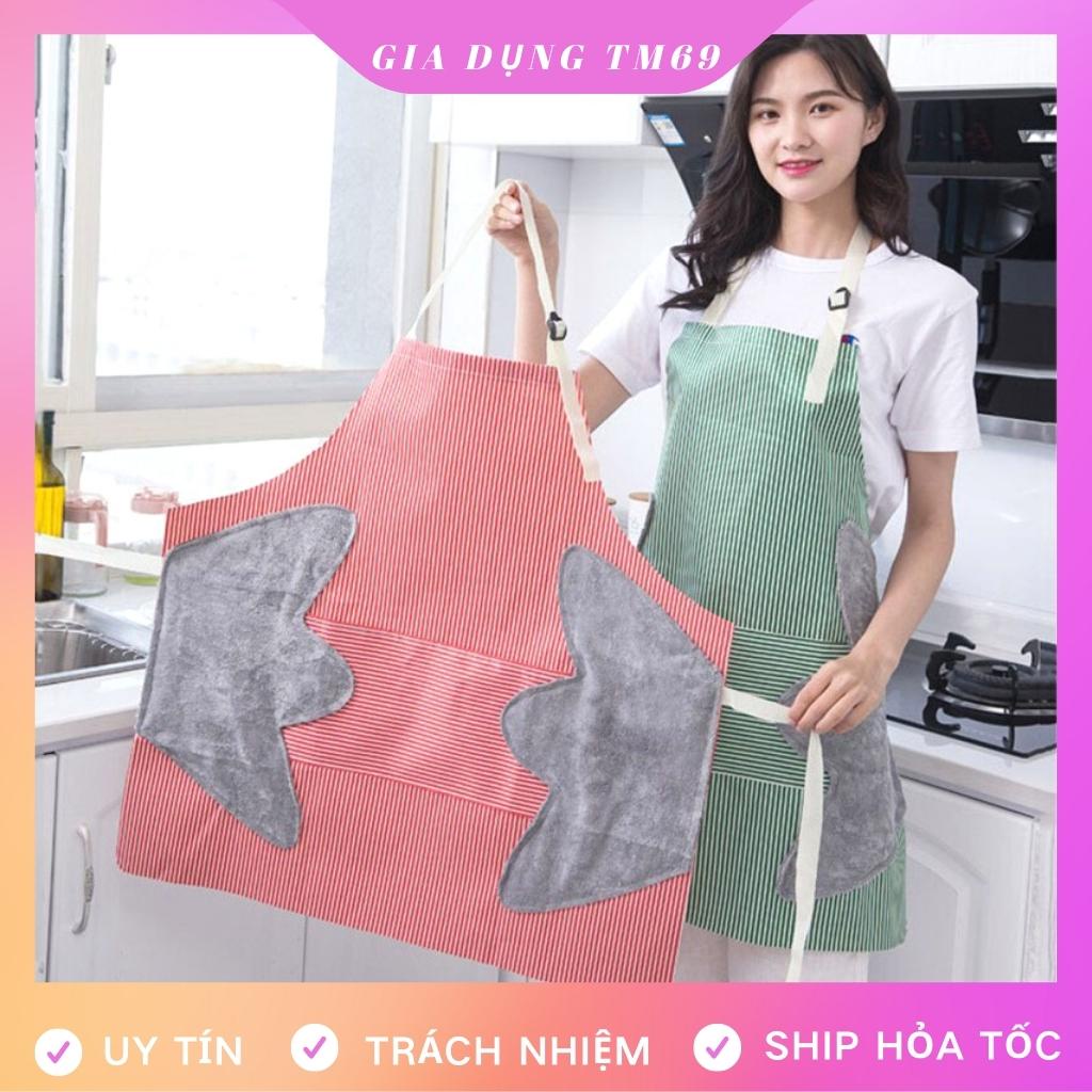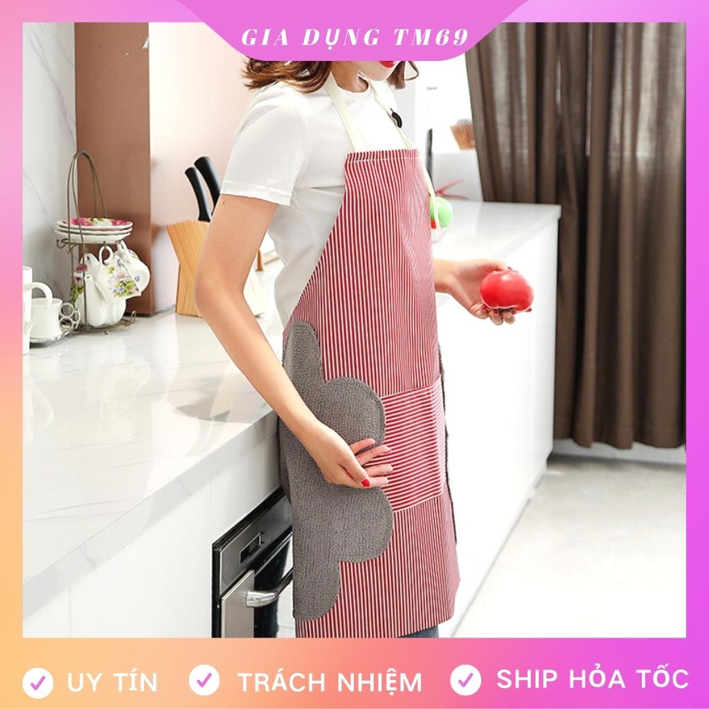 - Tạp dề nấu ăn chống nước có kèm theo nơi lau tay thấm hút nhưng lại rất xinh và tiện ích.
