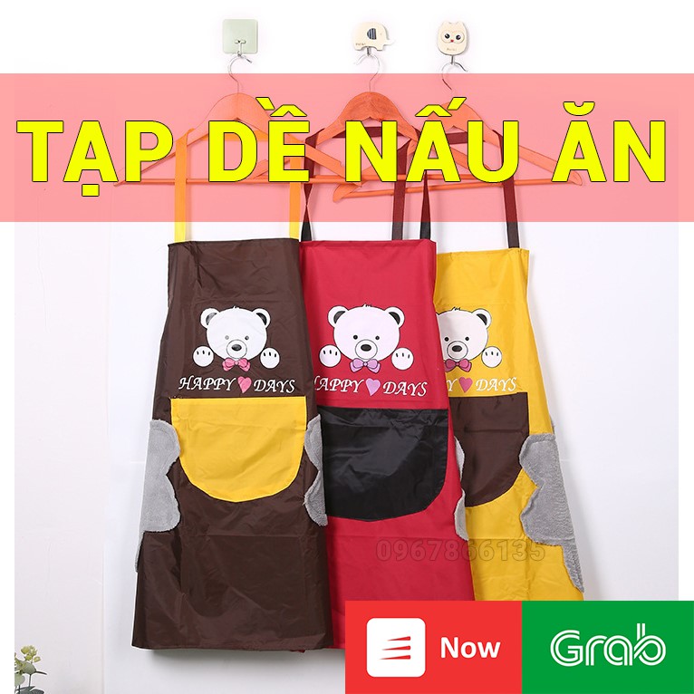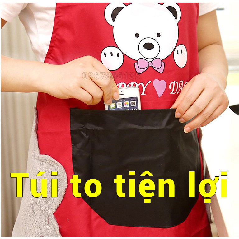 Tạp dề nấu ăn có túi đựng, có chỗ lau tay chống nước, chống dầu mỡ, chống bám bẩn họa tiết đáng yêu