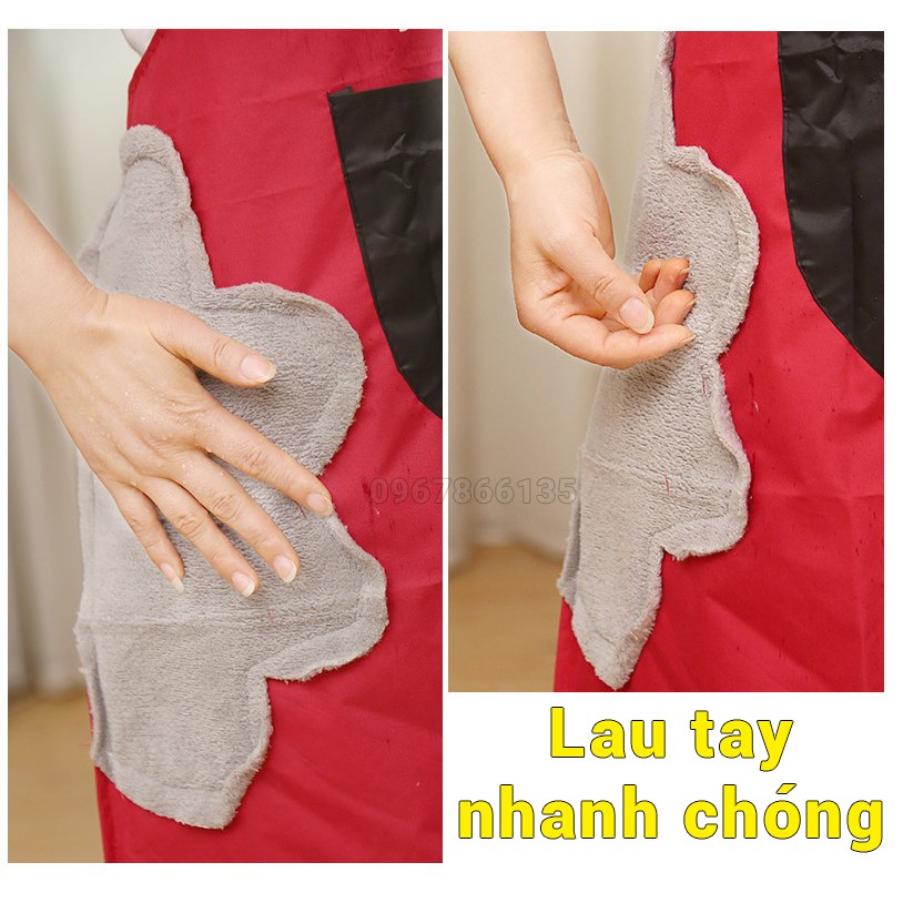 • Tạp Dề Chống Thấm với thiết kế thông minh khi được may kèm vải bông 2 bên hông giúp bạn lau tay nhanh chóng và sạch sẽ khi nấu ăn.