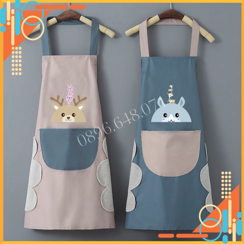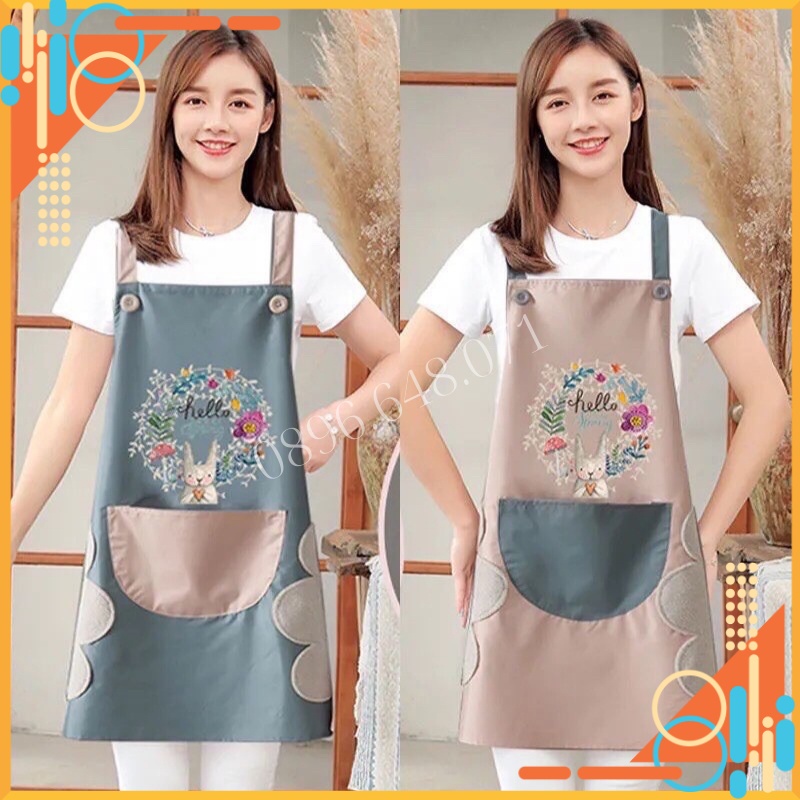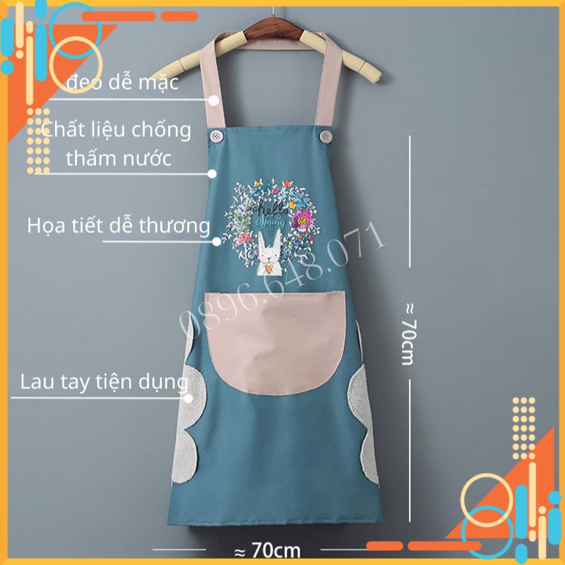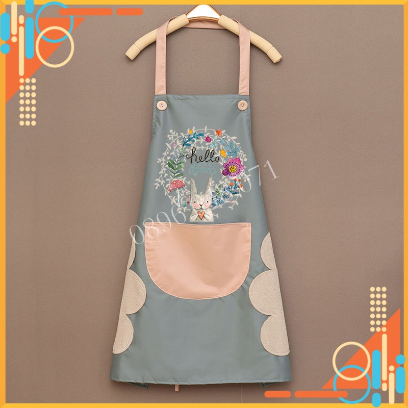 Tạp Dề Nấu Ăn Dễ Thương Vải Chống Nước Cao Cấp Họa Tiết Thỏ Xinh Xắn Có Túi Và Chỗ Lau Tay Cực Đẹp