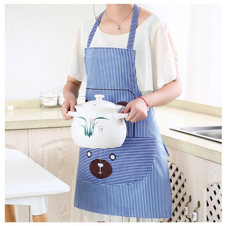 Giới thiệu Tạp Dề Nấu Ăn Hàn Quốc Gấu Kẻ Siêu Xinh - tạp dề vải dễ thương - dụng cụ nhà bếp