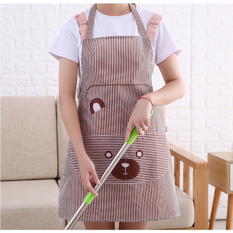 Tạp Dề Nấu Ăn Hàn Quốc Gấu Kẻ Siêu Xinh - tạp dề vải dễ thương - dụng cụ nhà bếp