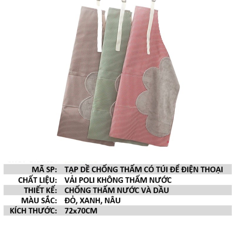 Tạp dề nhà bếp kẻ hoa có khăn lau tay bên hông, tạp dề chống thấm nước👌Chất liệu poli không thấm nước.