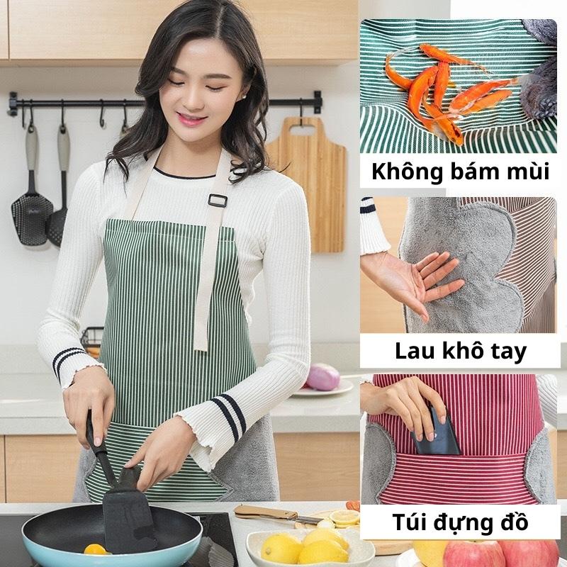 Tạp dề nấu ăn kẻ hoa có khăn lau tay bên hông, tạp dề chống thấm nước