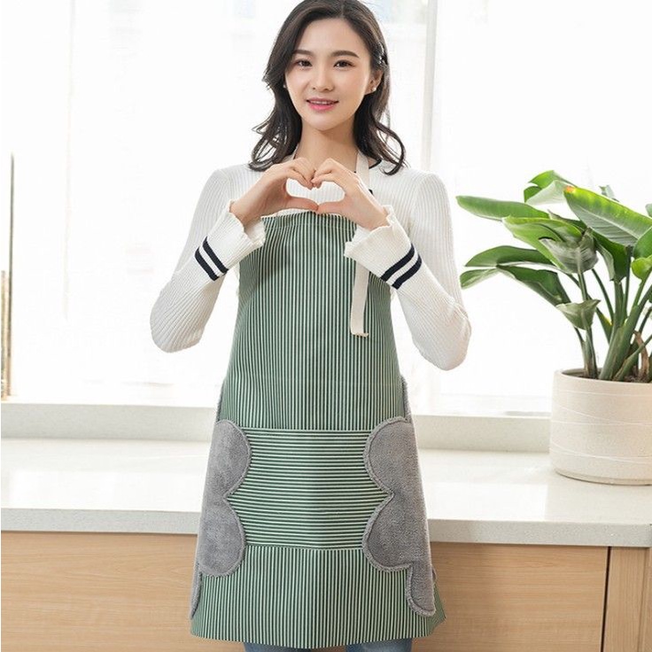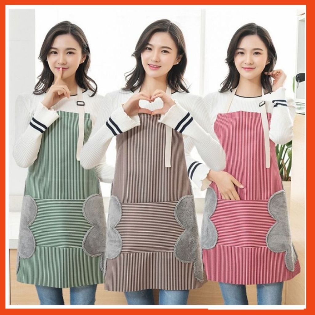 Nhà cửa & Đời sống > Dụng cụ nhà bếp > Tạp dề & gắng tay nấu nướng || Tạp dề nấu ăn kẻ sọc hoa có chỗ lau tay, chống thấm nước - NgocThi StoreCòn hàng