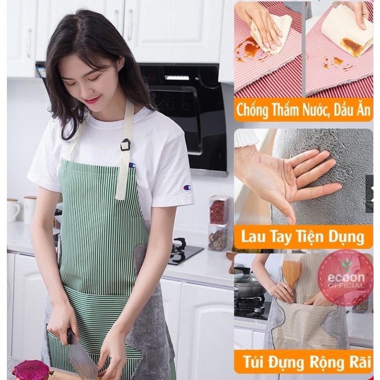 Tạp dề nấu ăn không thấm nước có túi trước bụng đựng đồ và khăn lau hai bên hông👉SHOP CAM KẾT: