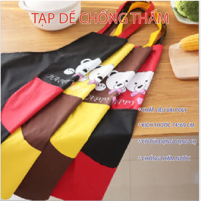 - Chất liệu:Tạp dề được làm từ vải polyester dễ lau chùi mà không sợ hỏng