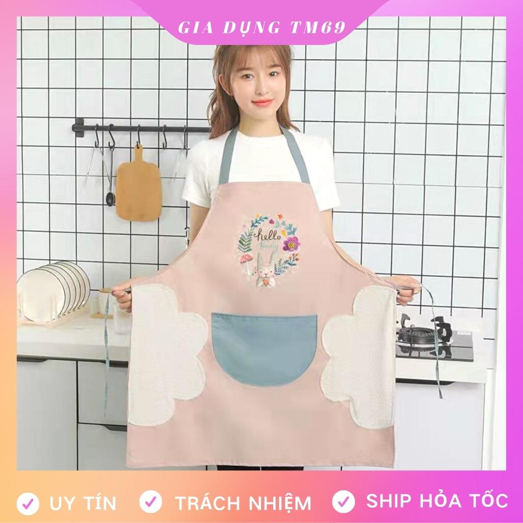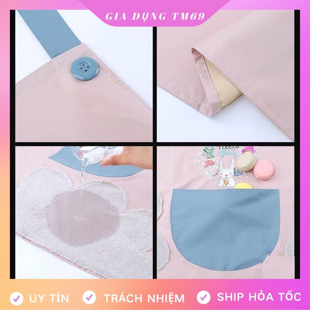 Tạp Dề Nấu Ăn Vải Chống Thấm Nước Dễ Thương Có Túi Nail Pha Chế Cao Cấp Họa Tiết Thỏ Xinh Có Chỗ Lau Tay