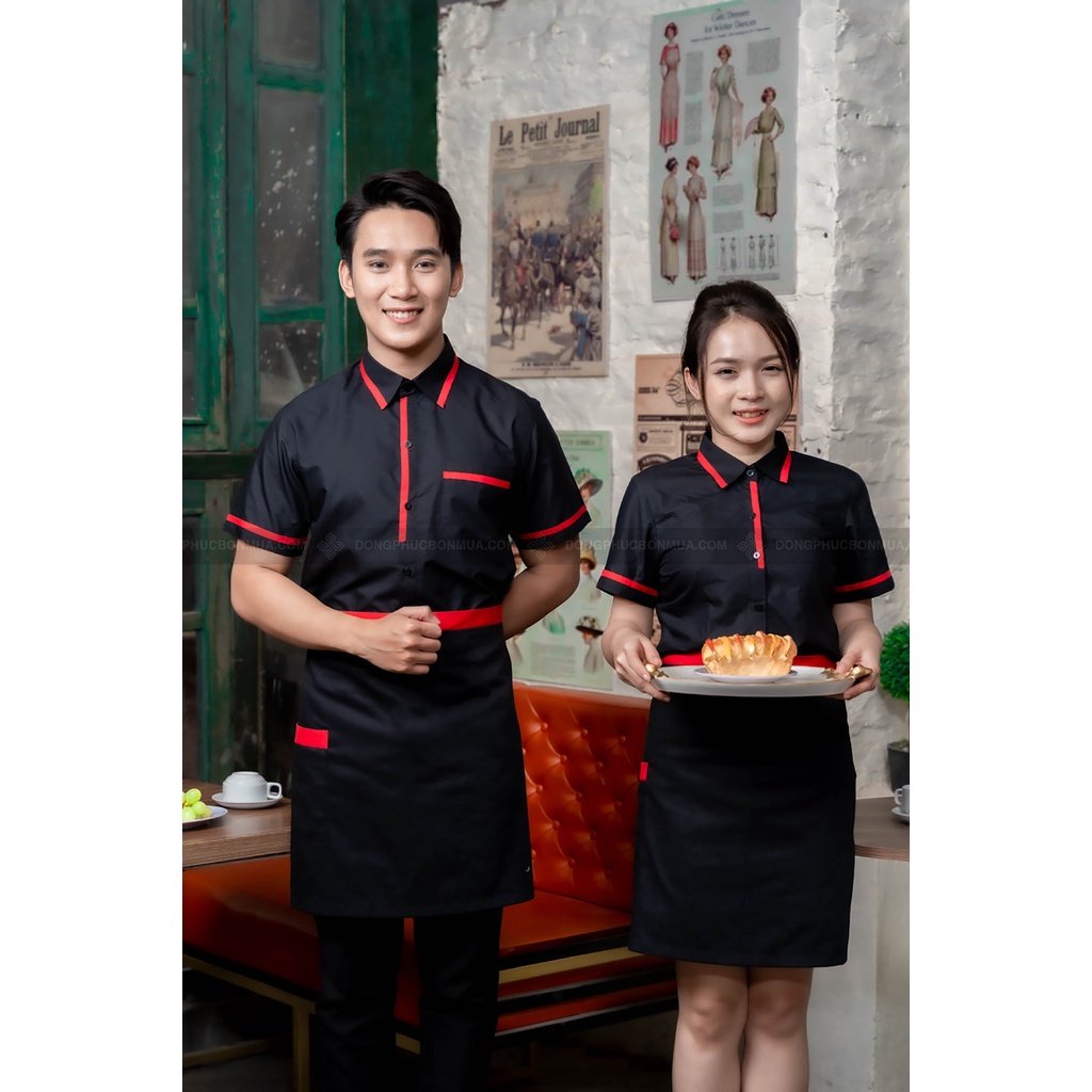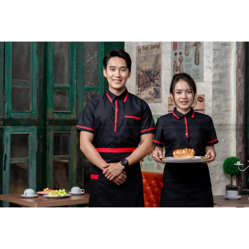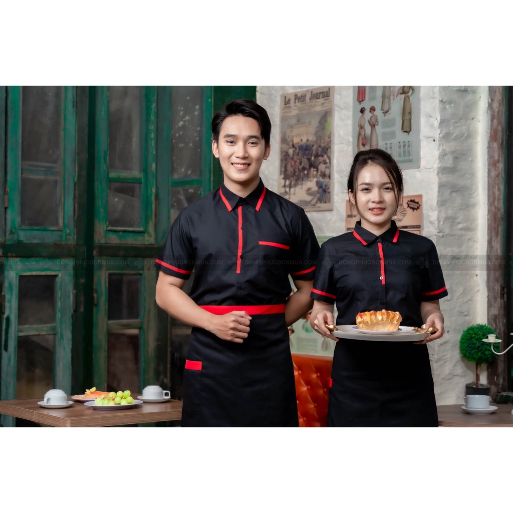 Tạp dề ngắn cho nhân viên phục vụ nhà hàng, quán cà phê - Màu đơn phối viền đỏ - Freesize, phù hợp với nam, nữ