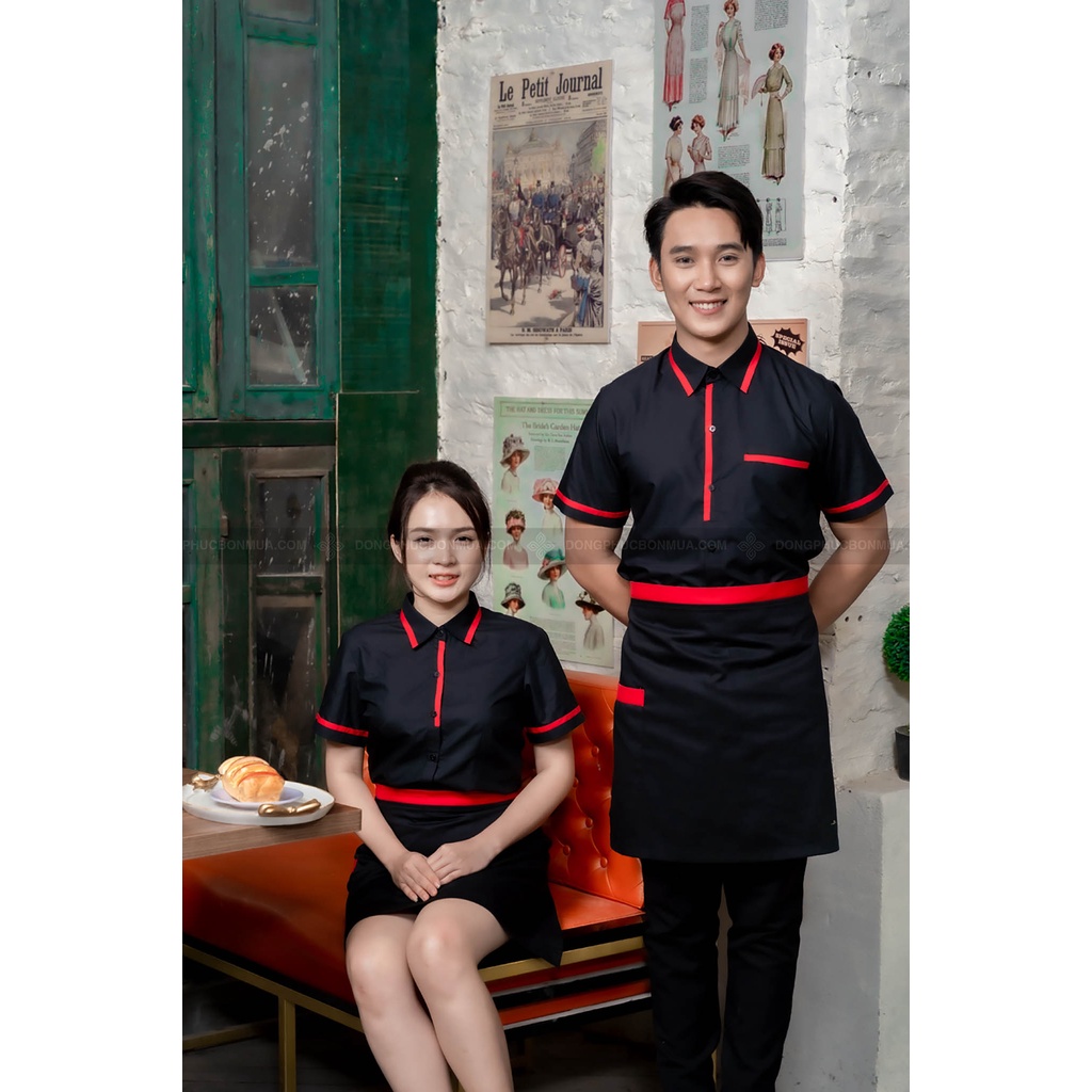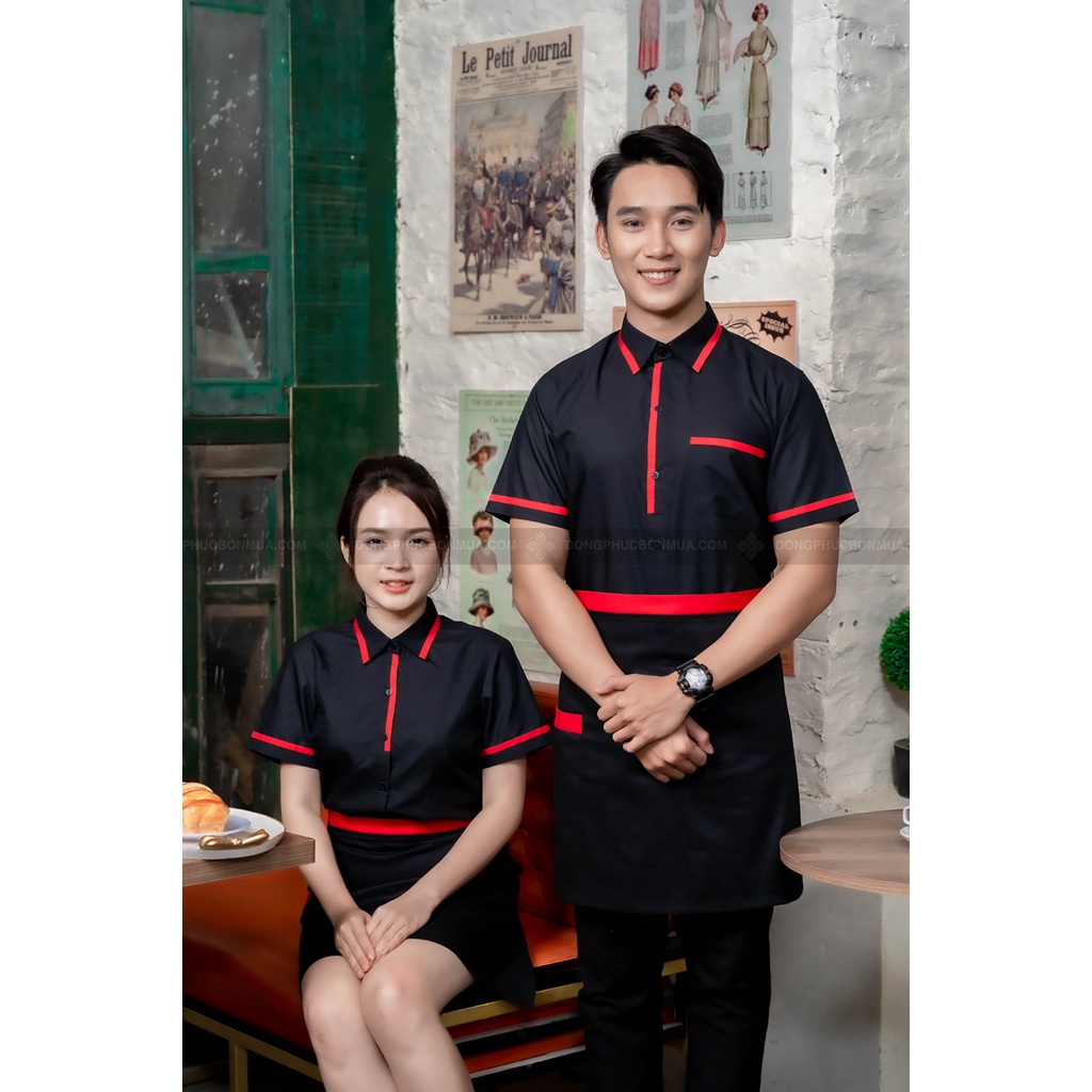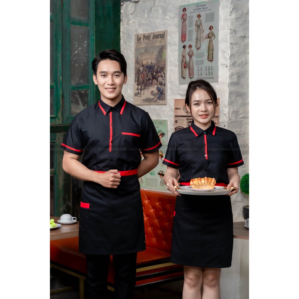 Tạp dề ngắn cho nhân viên phục vụ nhà hàng, quán cà phê - Màu đơn phối viền đỏ - Freesize, phù hợp với nam, nữ