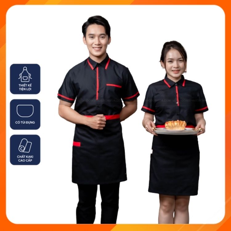 Giới thiệu Tạp dề ngắn cho nhân viên phục vụ nhà hàng, quán cà phê - Màu đơn phối viền đỏ - Freesize, phù hợp với nam, nữ