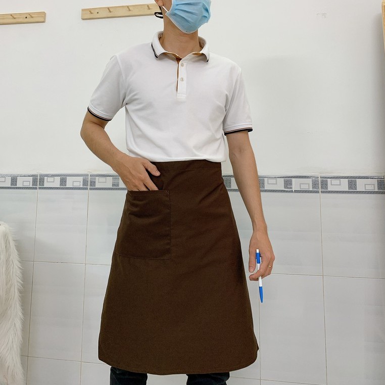 Nhà cửa & Đời sống > Dụng cụ nhà bếp > Tạp dề & gắng tay nấu nướng || Tạp dề ngắn cột ngang hông màu Nâu phục vụ nhân viên nam nữCòn hàng