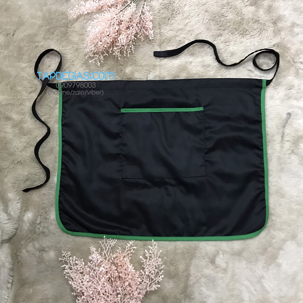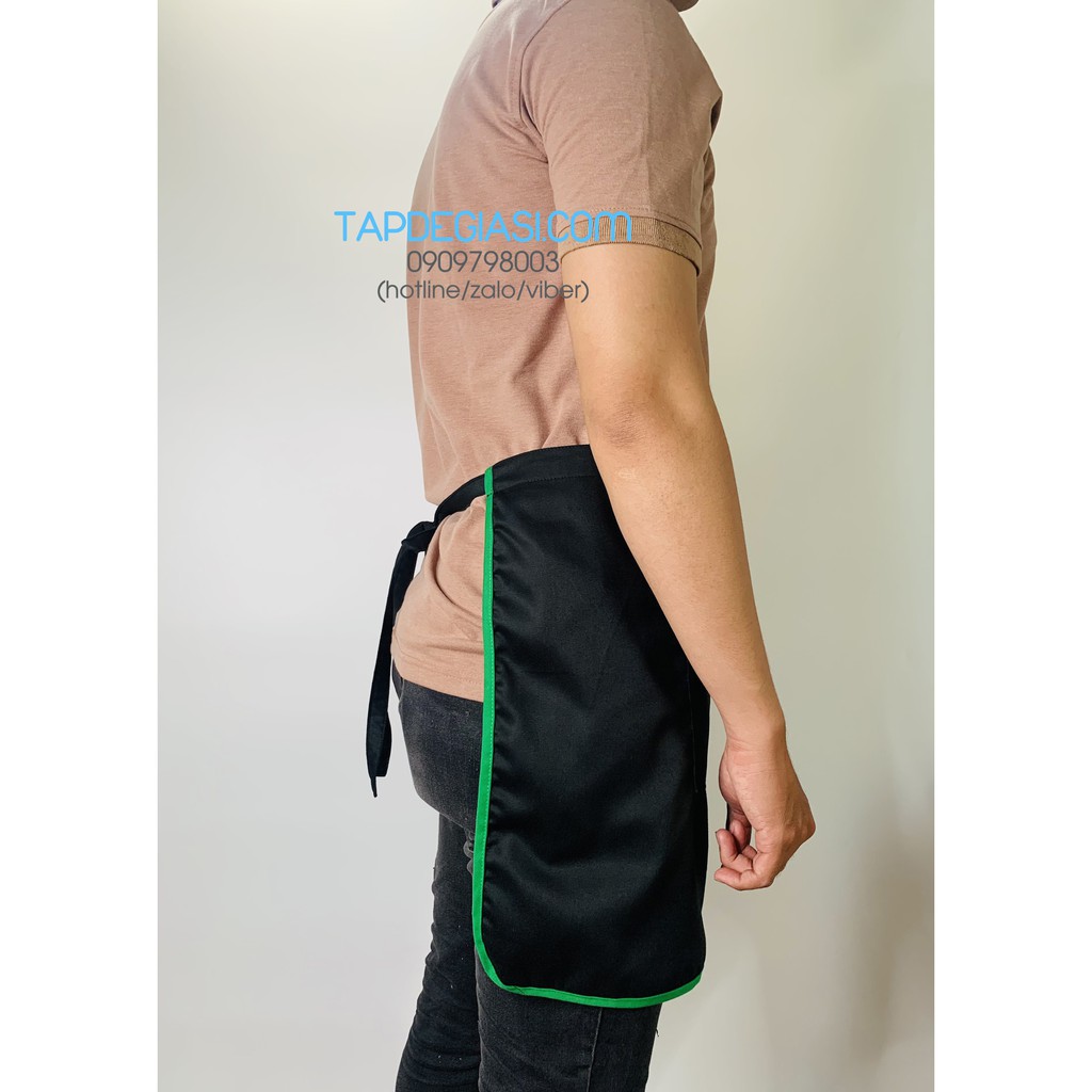 Giới thiệu Tạp dề ngắn đen phối viền xanh két cao cấp dành cho phục vụ Nam Nữ vải kaki cotton