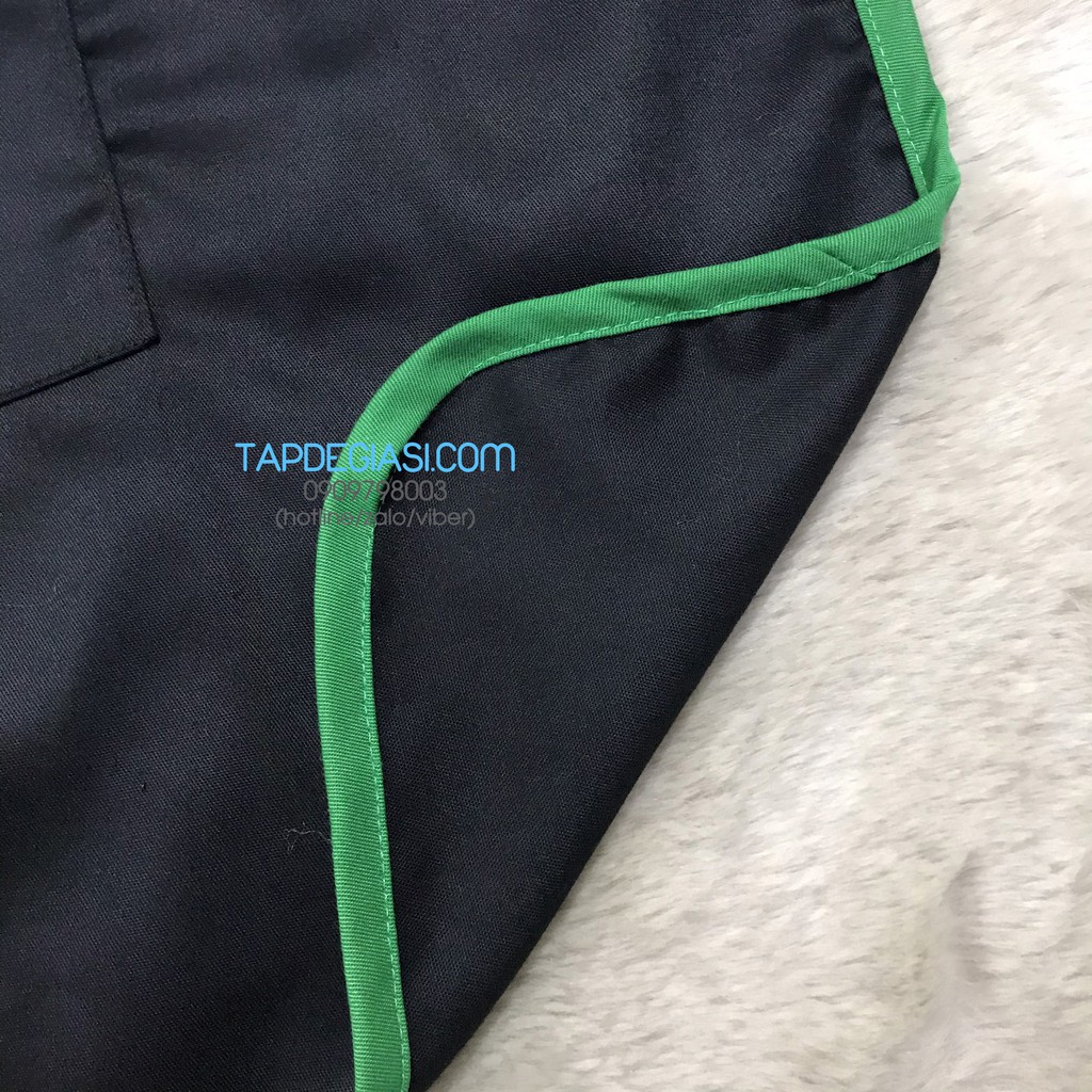 Nhà cửa & Đời sống > Dụng cụ nhà bếp > Tạp dề & gắng tay nấu nướng || Tạp dề ngắn đen phối viền xanh két cao cấp dành cho phục vụ Nam Nữ vải kaki cottonCòn hàng