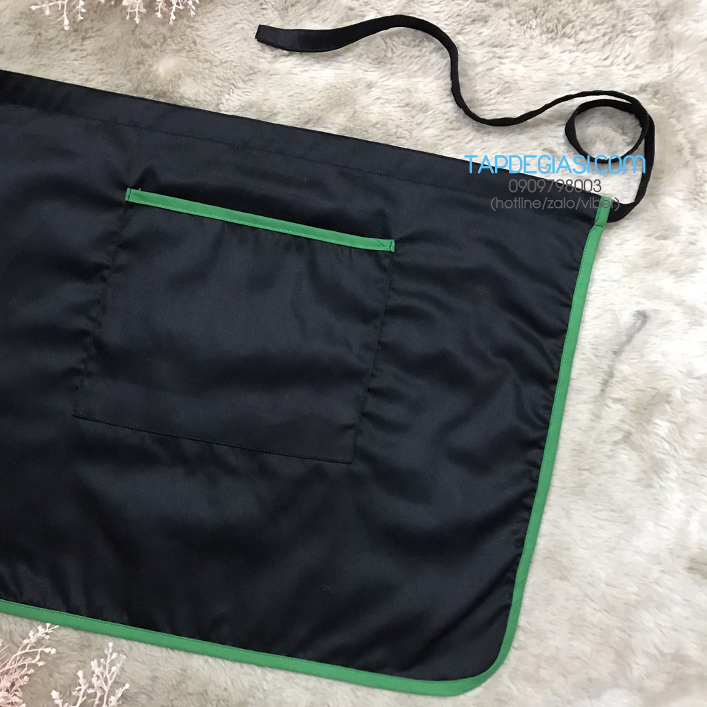 Tạp dề ngắn đen phối viền xanh két cao cấp dành cho phục vụ Nam Nữ vải kaki cotton