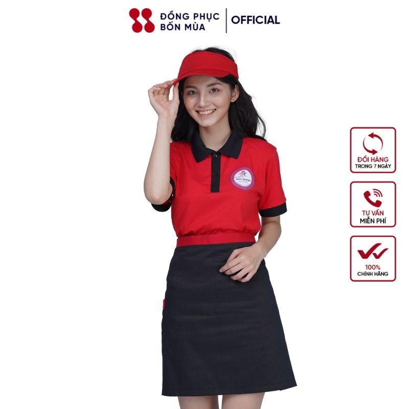 - Quy cách: Tạp dề ngắn, có 2 dây cột sau, có 1 túi đựng phía trước đựng sổ order hoặc vật dụng cần thiết
