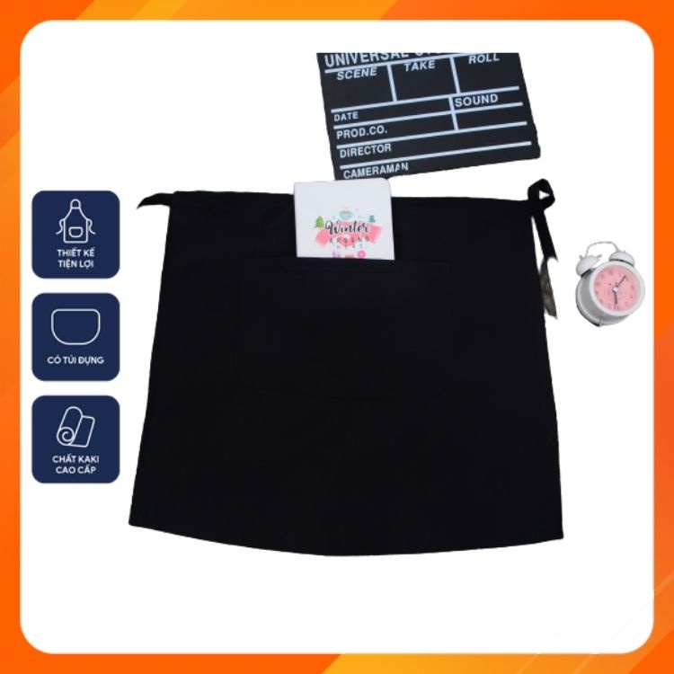 Giới thiệu Tạp dề ngắn màu đen trơn chất đẹp - Vải kaki dày dặn, đứng dáng - Thiết kế túi lớn tiện dụng cho nhân viên phục vụ