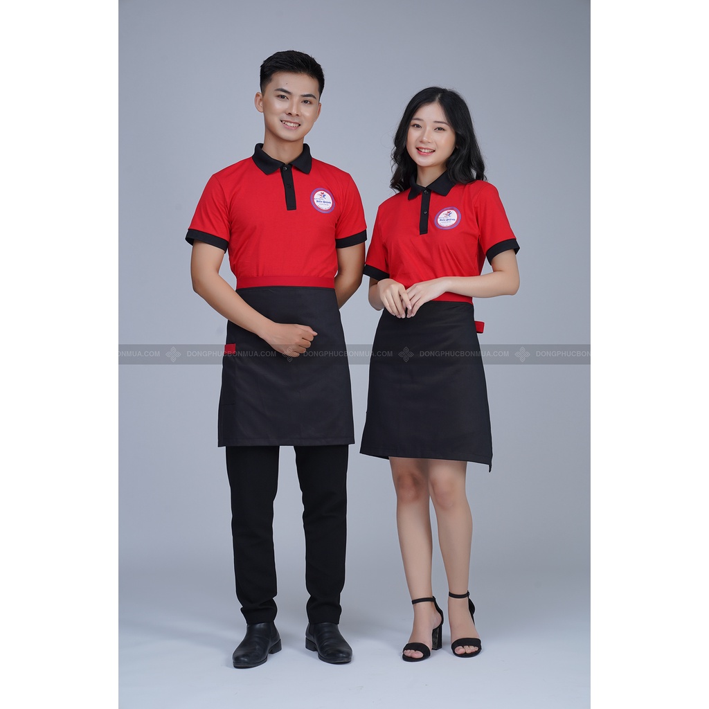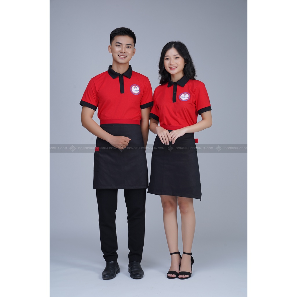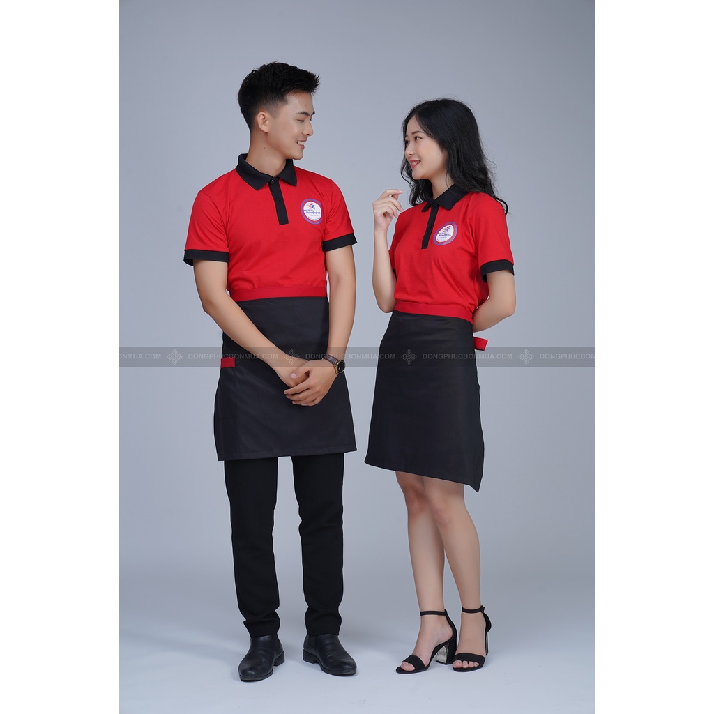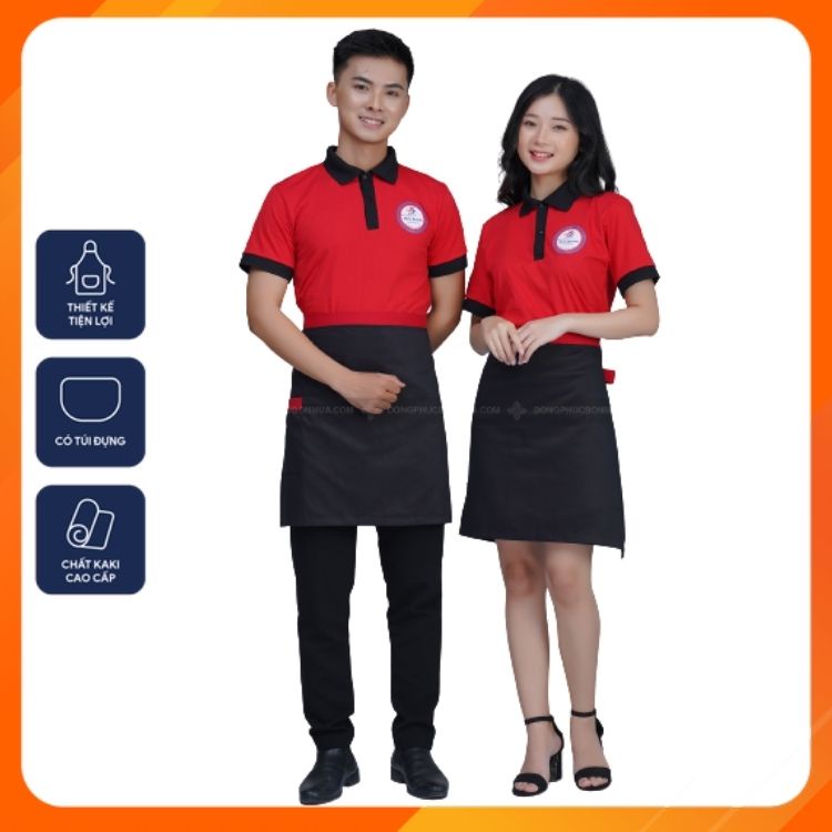 Tạp dề ngắn nhân viên phục vụ - Màu đen phối viền đỏ thời trang cao cấp - Thích hợp làm đồng phục tạp dề nam nữ