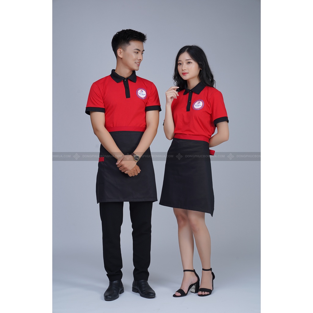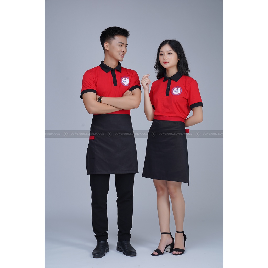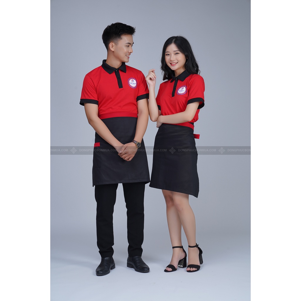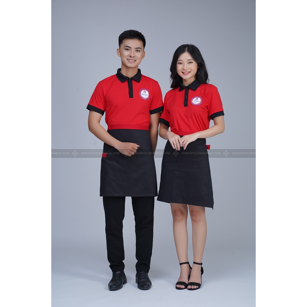 Tạp dề ngắn nhân viên phục vụ - Màu đen phối viền đỏ thời trang cao cấp - Thích hợp làm đồng phục tạp dề nam nữ