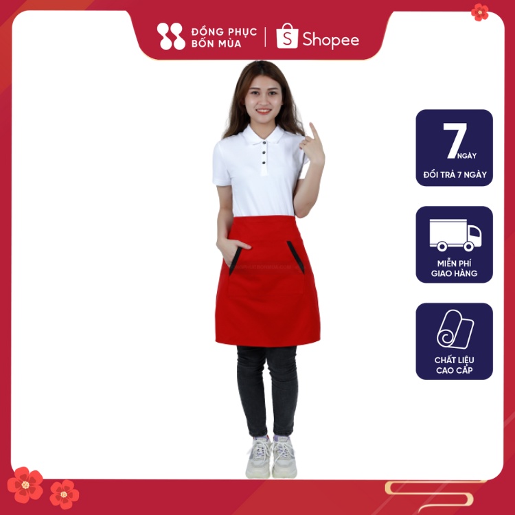 Tạp Dề Ngắn Nửa Người Tạp Dề Phục Vụ Màu Đỏ Túi Vuông Đồng Phục Đẹp Giá Siêu Rẻ-ĐỒNG PHỤC BỐN MÙA