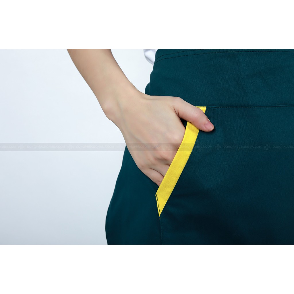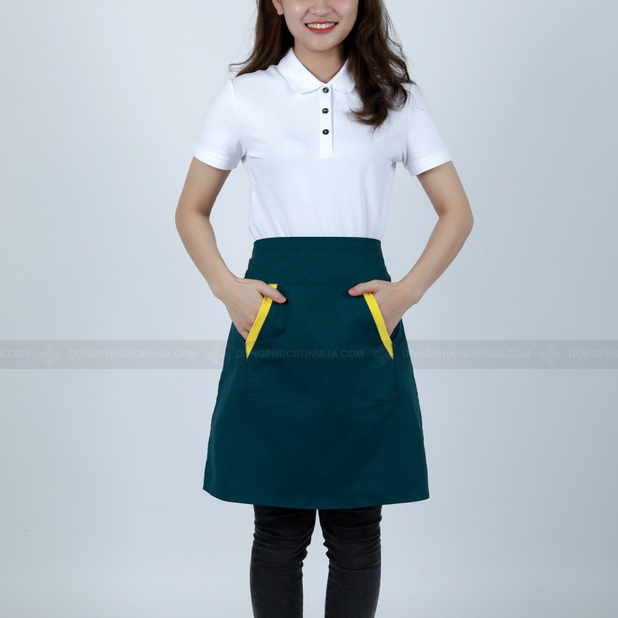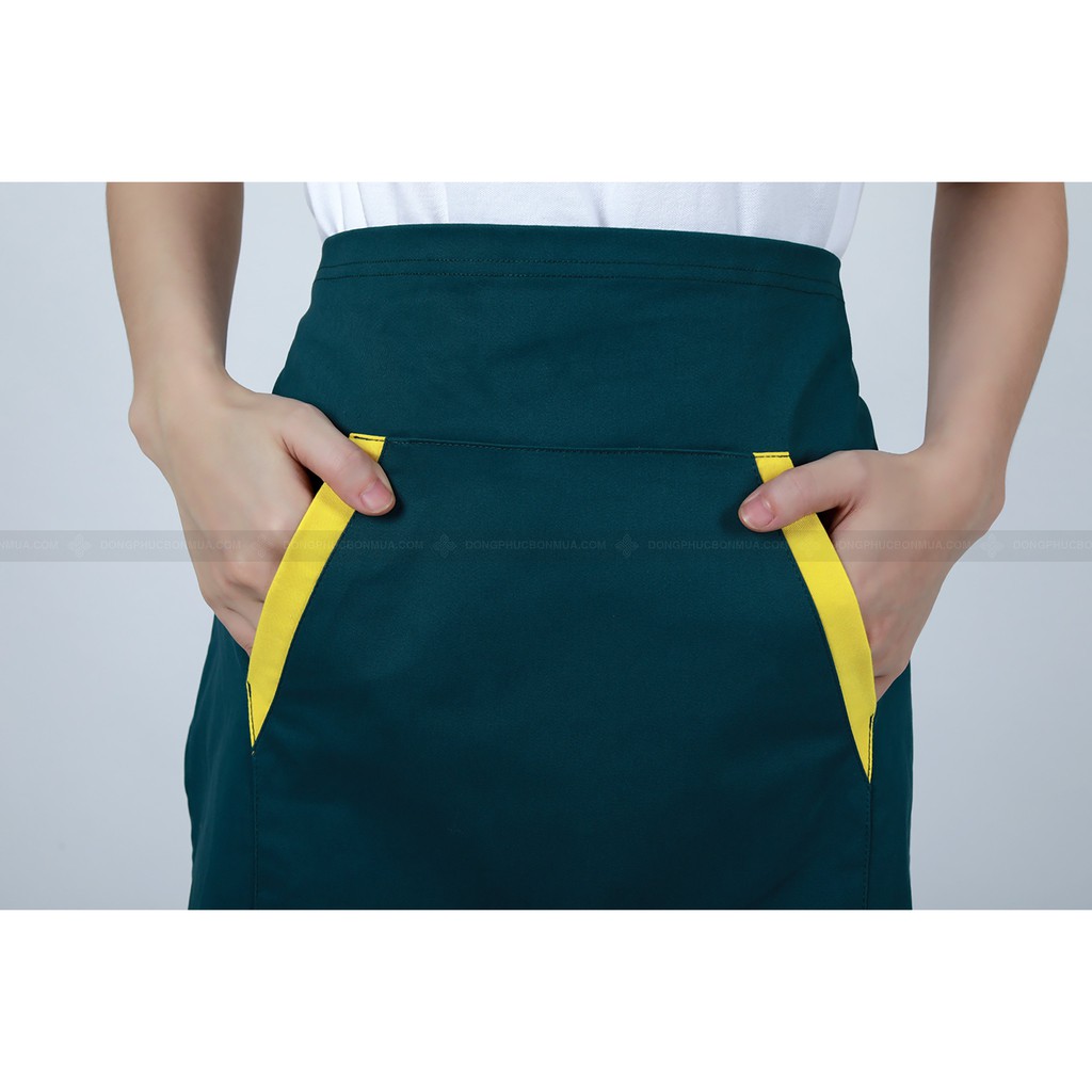 Tạp Dề Ngắn Nửa Người Tạp Dề Phục Vụ Màu Xanh Phối Túi Chéo Vàng Cực Nổi Bật -Đồng Phục Bốn Mùa✡ THÔNG TIN CHI TIẾT VỀ SẢN PHẨM: