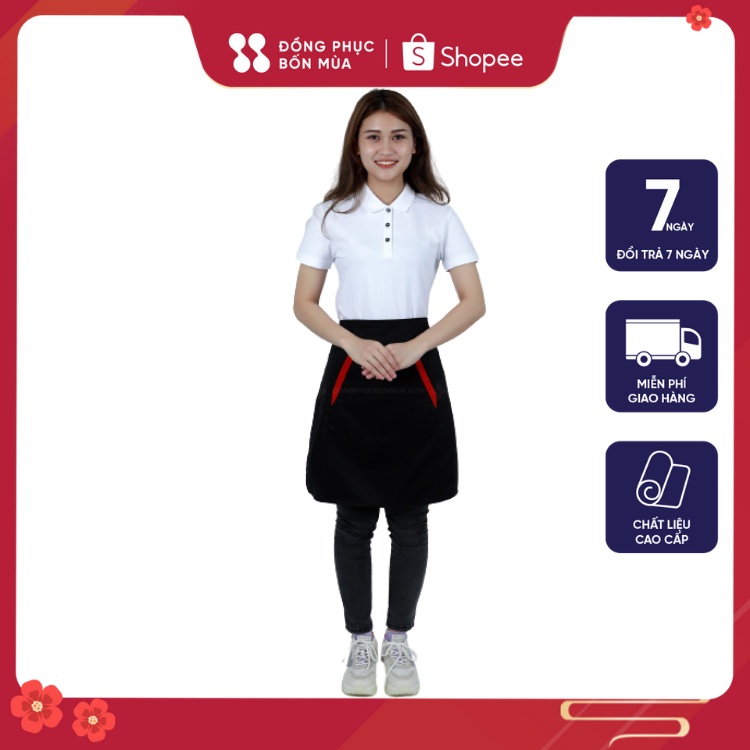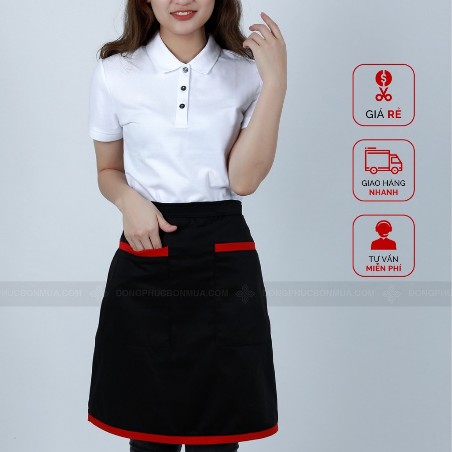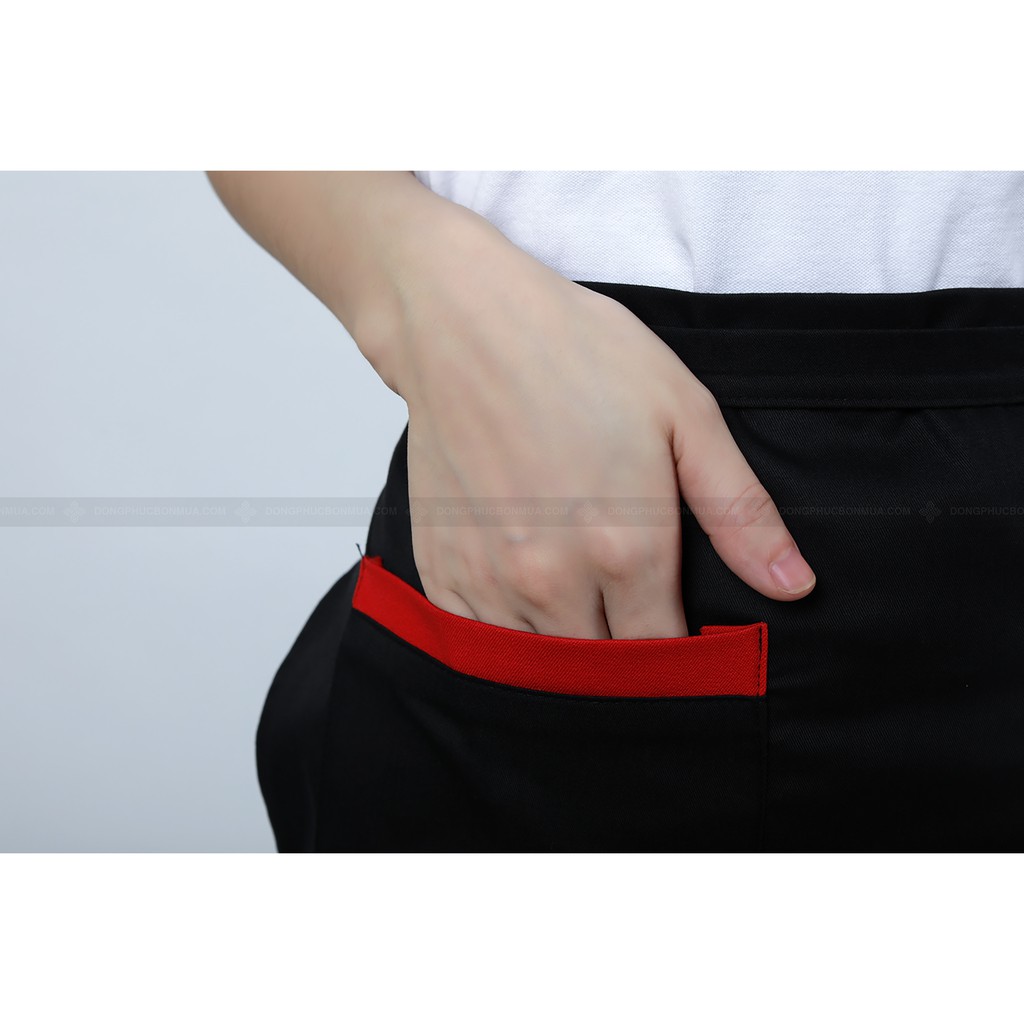 Tạp Dề Ngắn Nửa Người Tạp Dề Phục Vụ Đồng Phục Màu Đen Phối Túi Vuông Cực Tiện Dụng - Đồng Phục Bốn Mùa