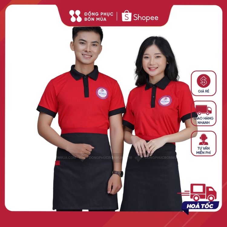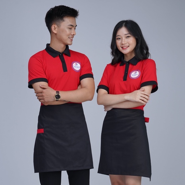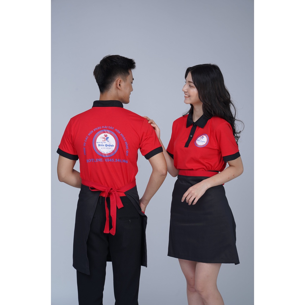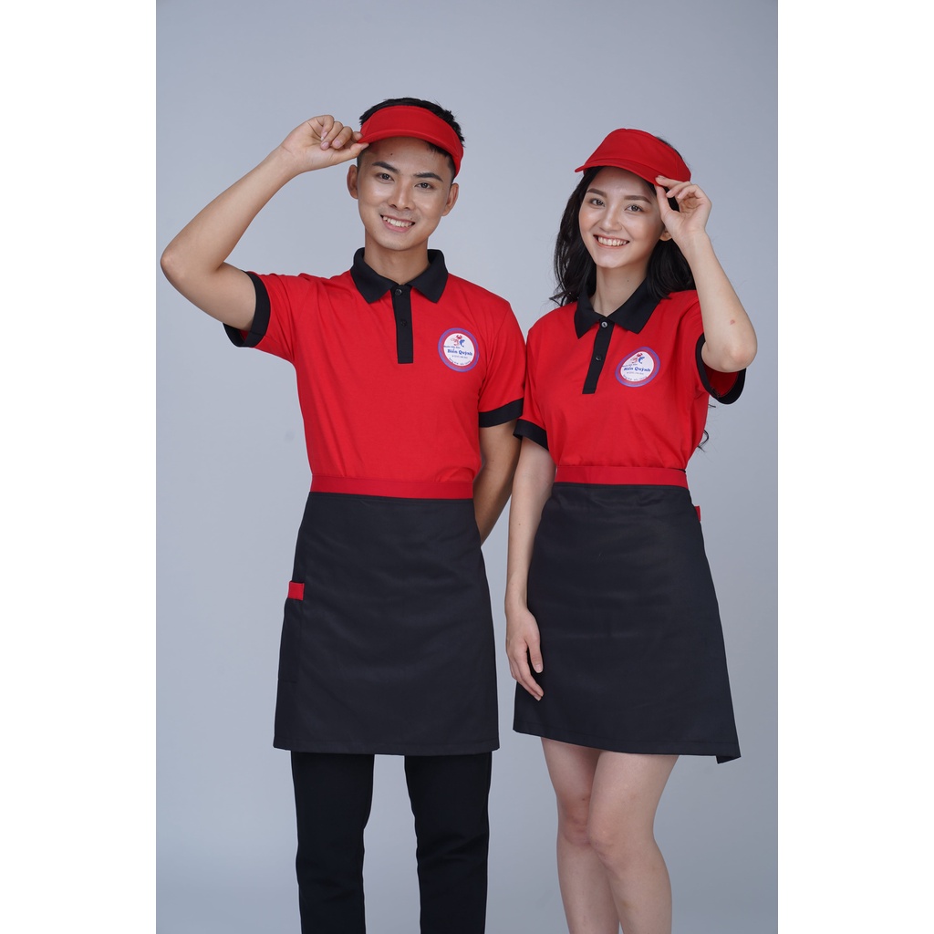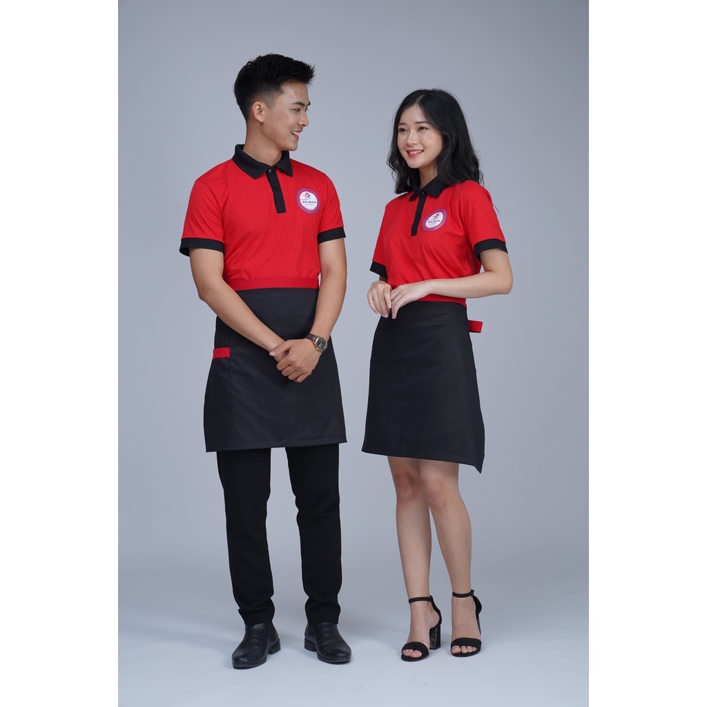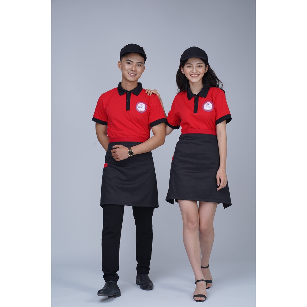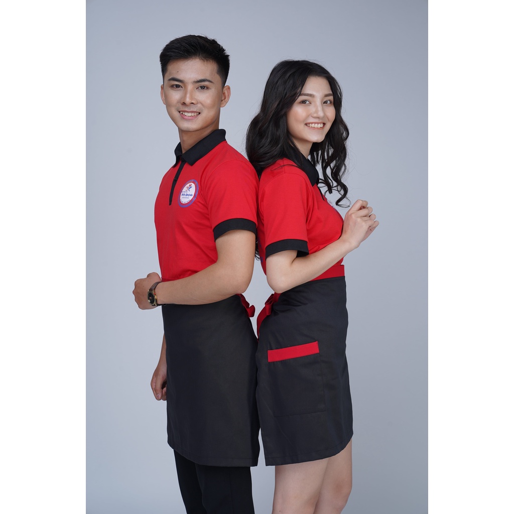 Tạp Dề Ngắn - Tạp dề MÀU Đen phối viền đỏ- Đồng Phục cho nhân viên phục vụ - Đồng phục nhà hàng sẵn hàng ảnh thật 100%