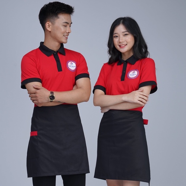 Giới thiệu Tạp Dề Ngắn - Tạp dề MÀU Đen phối viền đỏ- Đồng Phục cho nhân viên phục vụ - Đồng phục nhà hàng sẵn hàng ảnh thật 100%