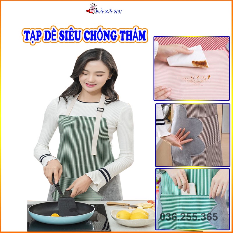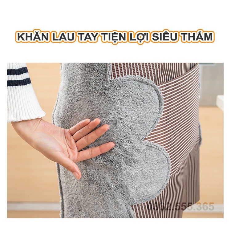 Tạp Dề Chống Thấm với thiết kế thông minh khi được may kèm vải bông 2 bên hông giúp bạn lau tay nhanh chóng và sạch sẽ khi nấu ăn. Bên cạnh đó chiếc tạp dề này còn thiết kế cho bạn chiếc túi to để đựng điện thoại rất tiện lợi.