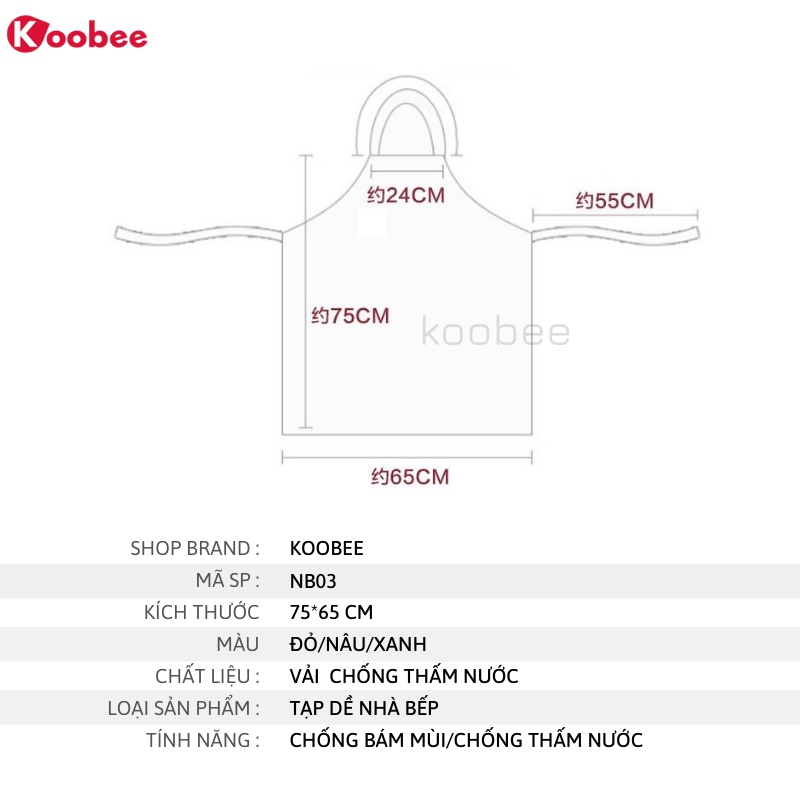 Giới thiệu Tạp Dề Nhà Bếp Cao Cấp Tích Hợp Khăn Lau Tay Chống Bám Bẩn, Dầu Mỡ Hiệu Quả KOOBEE (NB03)