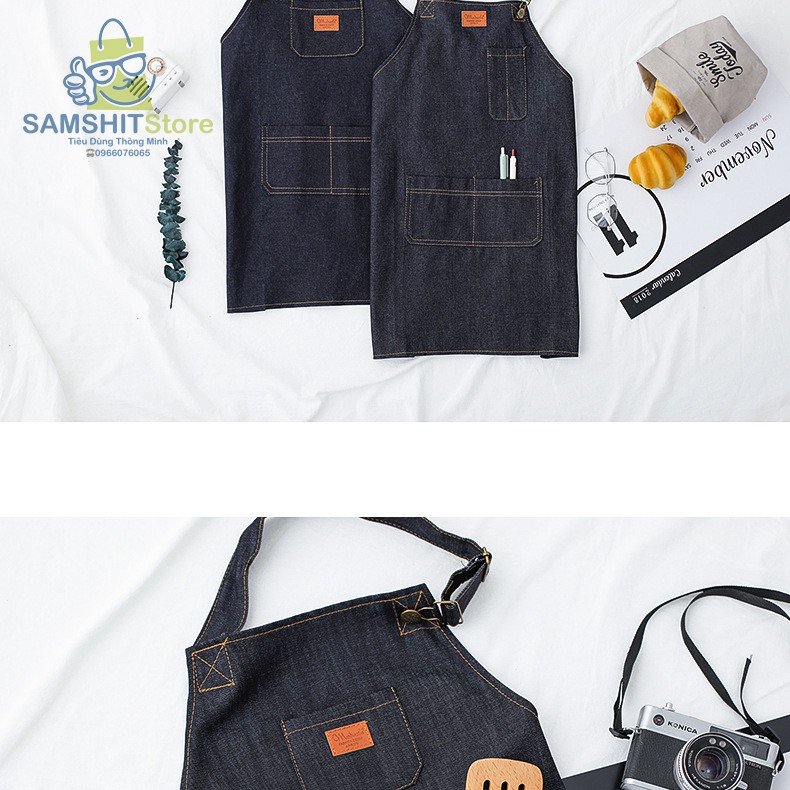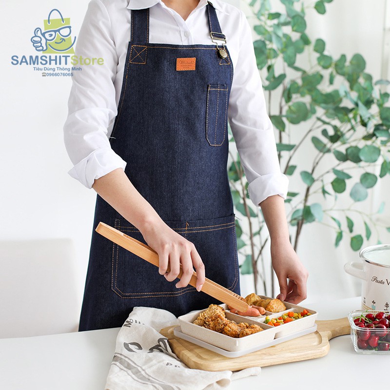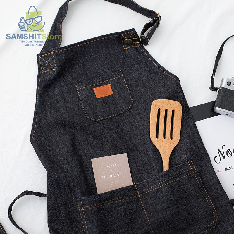 Tạp Dề Nhà Bếp Denim Có Túi Giá Rẻ Chống Thấm Nước, Dầu Mỡ Cho Nội Trợ, Làm Bánh, Bartender - GD21💟 Thông tin sản phẩm: