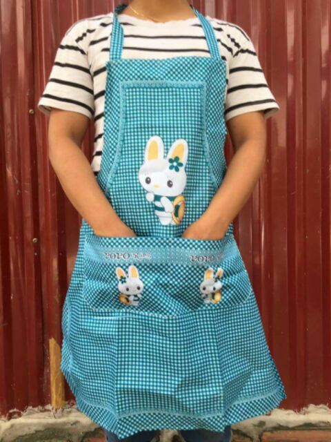 Giới thiệu Tạp dề nhà bếp hoạ tiết kẻ caro hình thú kute có túi phía trước