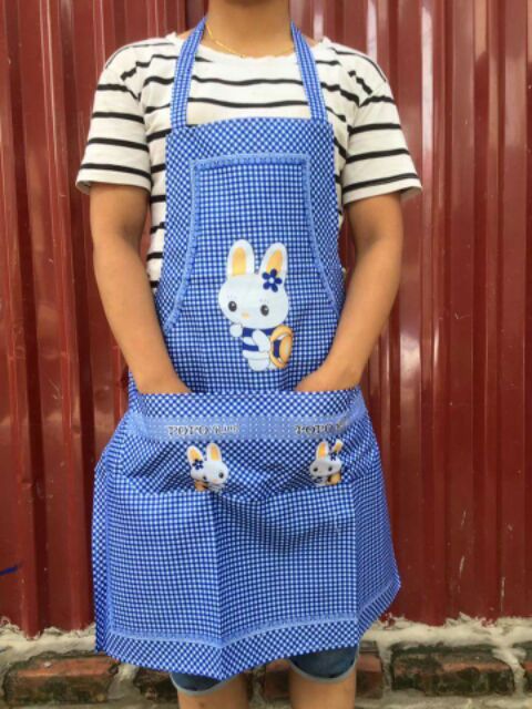 Tạp dề nhà bếp hoạ tiết kẻ caro hình thú kute có túi phía trước