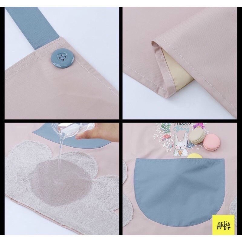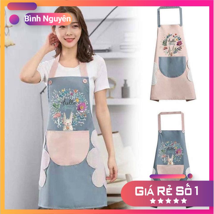 Giới thiệu Tạp Dề Nhà Bếp Thêu Hoa Thỏ - tạp dề thêu họa tiết Lau Tay Không Thấm Nước Và Bám Dầu Có Túi Đựng