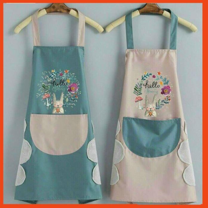 Giới thiệu Tạp Dề Nhà Bếp Thêu Hoa Thỏ - tạp dề thêu họa tiết Lau Tay Không Thấm Nước Và Bám Dầu Có Túi Đựng BN
